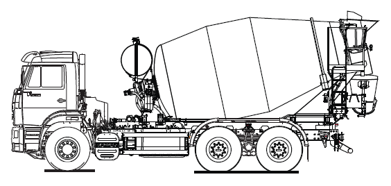 Привод смесительного барабана осуществляется от двигателя шасси с отбором мощности через КОМ. Привод от двигателя шасси значительно улучшает экономические (снижаются расходы топлива, масса технологического оборудования, трудозатраты на техобслуживание), экологические (снижаются выбросы вредных веществ) и эргономические показатели (снижен уровень шума).