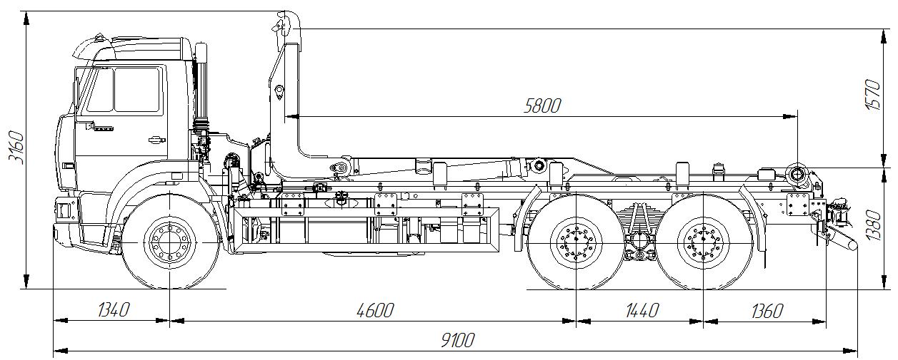 Автомобиль 658667-2032-02 с крюковым погрузчиком МПР-20П.58 предназначен для интенсивных транспортных работ с использованием сменных кузовов DIN 30722-1, с внутренними размерами длины от 6000 до 6500 мм, полной массой до 18,28 тонн.