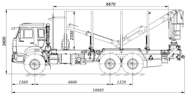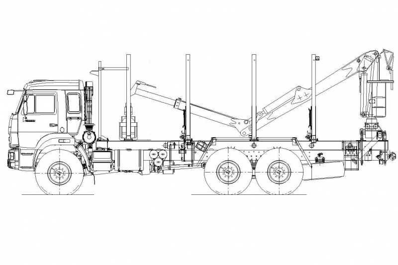 Автомобиль снабжен гидроманипулятором СФ 65С предназначенным для перемещения и укладки поваленных деревьев и их частей с целью погрузки (разгрузки), штабелевки, сортировки, а также выполнения других лесохозяйственных и лесозаготовительных работ.