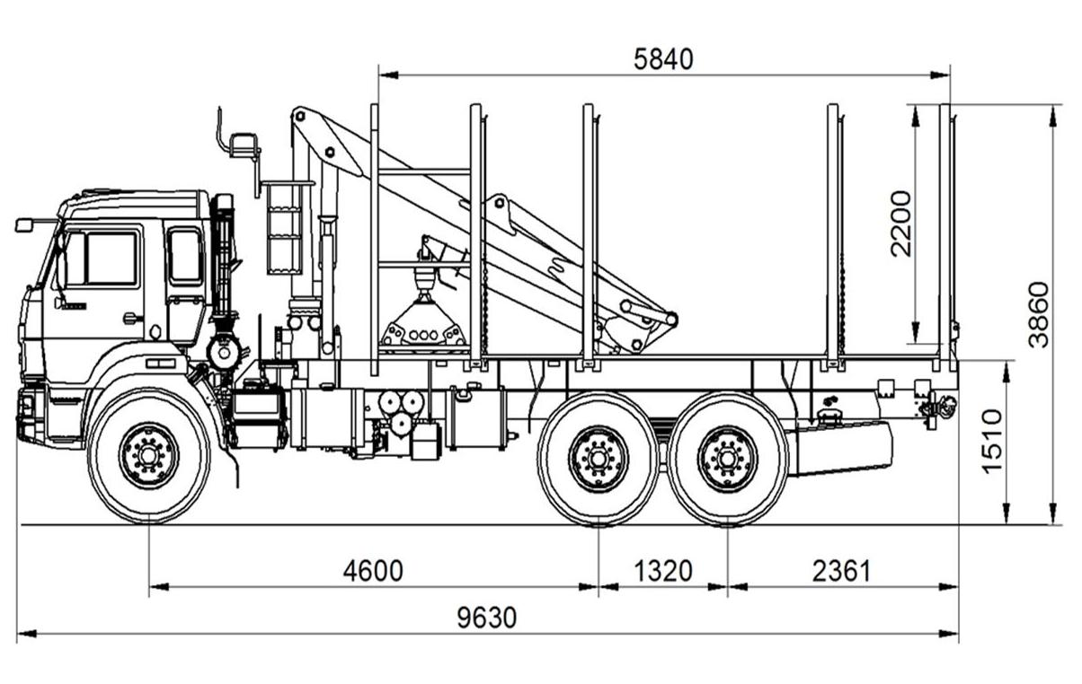 Автомобиль снабжен гидроманипулятором «ВЕЛМАШ ОМТЛ-97» предназначенным для перемещения и укладки поваленных деревьев и их частей с целью погрузки (разгрузки), штабелевки, сортировки, а также выполнения других лесохозяйственных и лесозаготовительных работ.